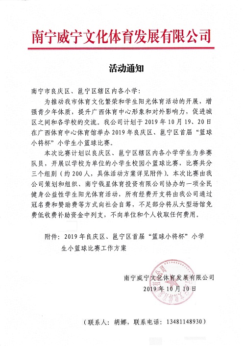 2019年良庆区、邕宁区首届“篮球小将杯”小学生小篮球比赛活动通知