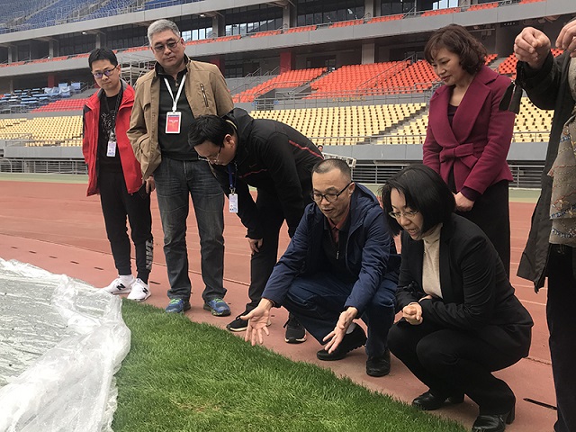 何颖首先对2019年“中国杯”国际足球锦标赛比赛场地、训练场地草坪养护情况和运动员休息室准备情况进行勘查,重点了解草坪养护下一阶段实施方案。她对威宁文体公司能在短时间内克服复杂天气场和损坏严重的场地等不利因素的影响,仍然按要求提供基本符合赛事标准场地表示肯定,希望在接下来的关键时期,依旧保持严谨的工作作风,确保场地符合要求,保障赛事顺利举行。目前,比赛场、训练场草坪已先后进行多次剪草、打药防治病虫害、施肥和铺设保温薄膜,并根据中国足协2月22日检查场地时提出的要求,已完成了比赛场二次补播草种工作,比赛场和训练场草坪目前均基本成坪。