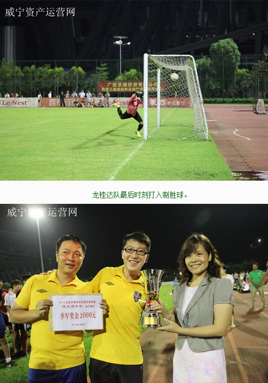 8月7日晚,2013加油中国城市足球冠军联赛南宁赛区冠军争夺战在广西体育中心足球训练场进行。获得去年全国总决赛冠军的龙桂达队在1:2落后的局面下,最后10分钟连下两城,成功卫冕南宁赛区冠军,对手宏达队则屈居亚军。根据比赛规则,两队携手进入南区赛。