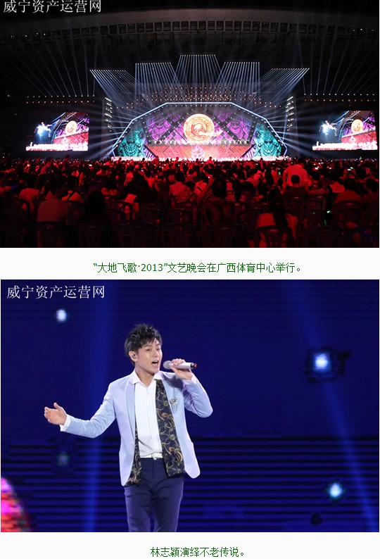 9月3日晚,“大地飞歌•2013”民歌节开幕式晚会在广西体育中心主体育场举行。整场晚会以回归民歌、回归经典为主题,将广西民歌和中国民歌乃至世界民歌连接在一起,真正回归民歌本源,为观众奉献了一场精彩的民歌晚会。